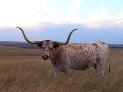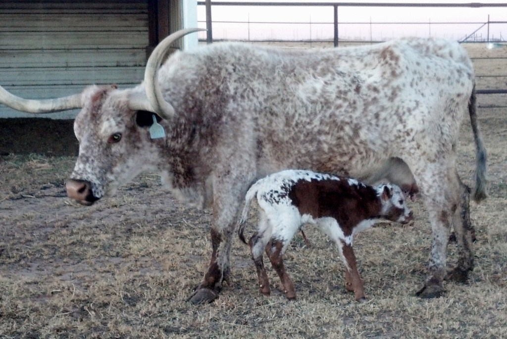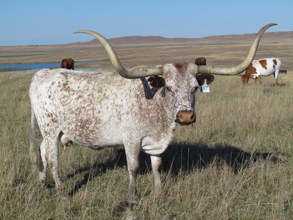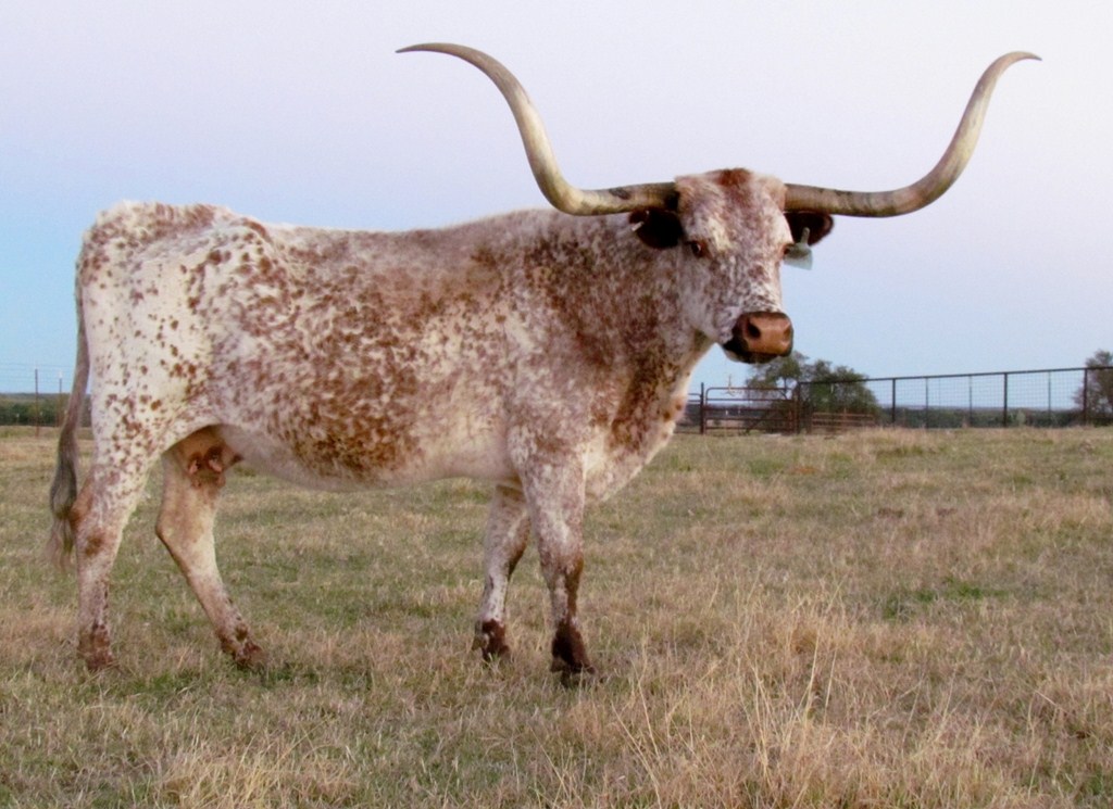 Delta Mae is our addition who was bred by "Johnnie Hoffman" himself. On 12/16/10 Mae measured 67.375 tip to tip, a 10" base, and 97" total horn. 184"+ composite. Mae is a key cow in the heart of our elite portion of our herd. We are excited to have her 2011 Trail Dust daughter and now her 2012 Bar B Q bull to carry her genetics on as Mae is now 20 years of age.